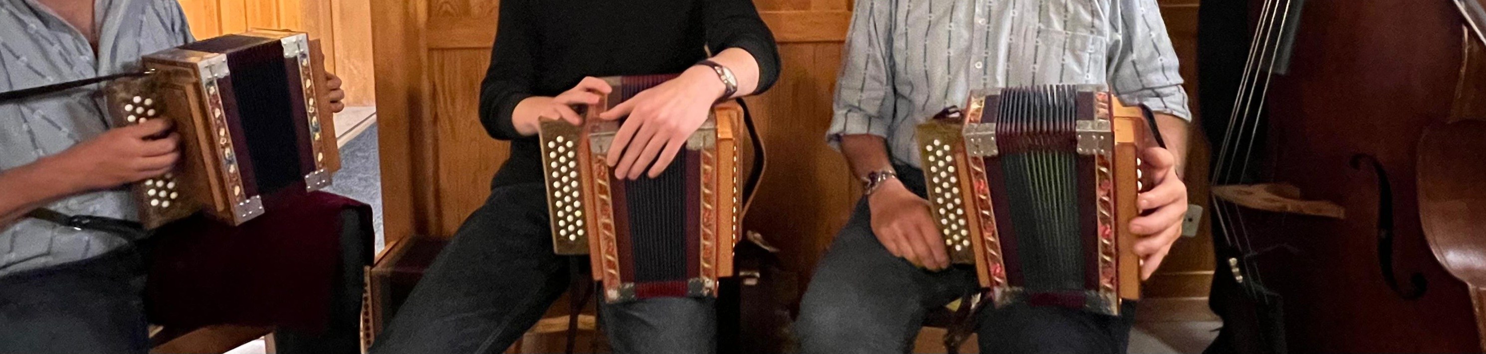 Basés dans les cantons de Genève et de Vaud, nous jouons ensemble depuis plusieurs années dans le style typique de la Suisse centrale, une musique rythmée, fine et mélodieuse. Avec nos accordéons schwyzois et la contrebasse, nous aimons créer une ambiance chaleureuse et faire plaisir aux gens qui nous écoutent.